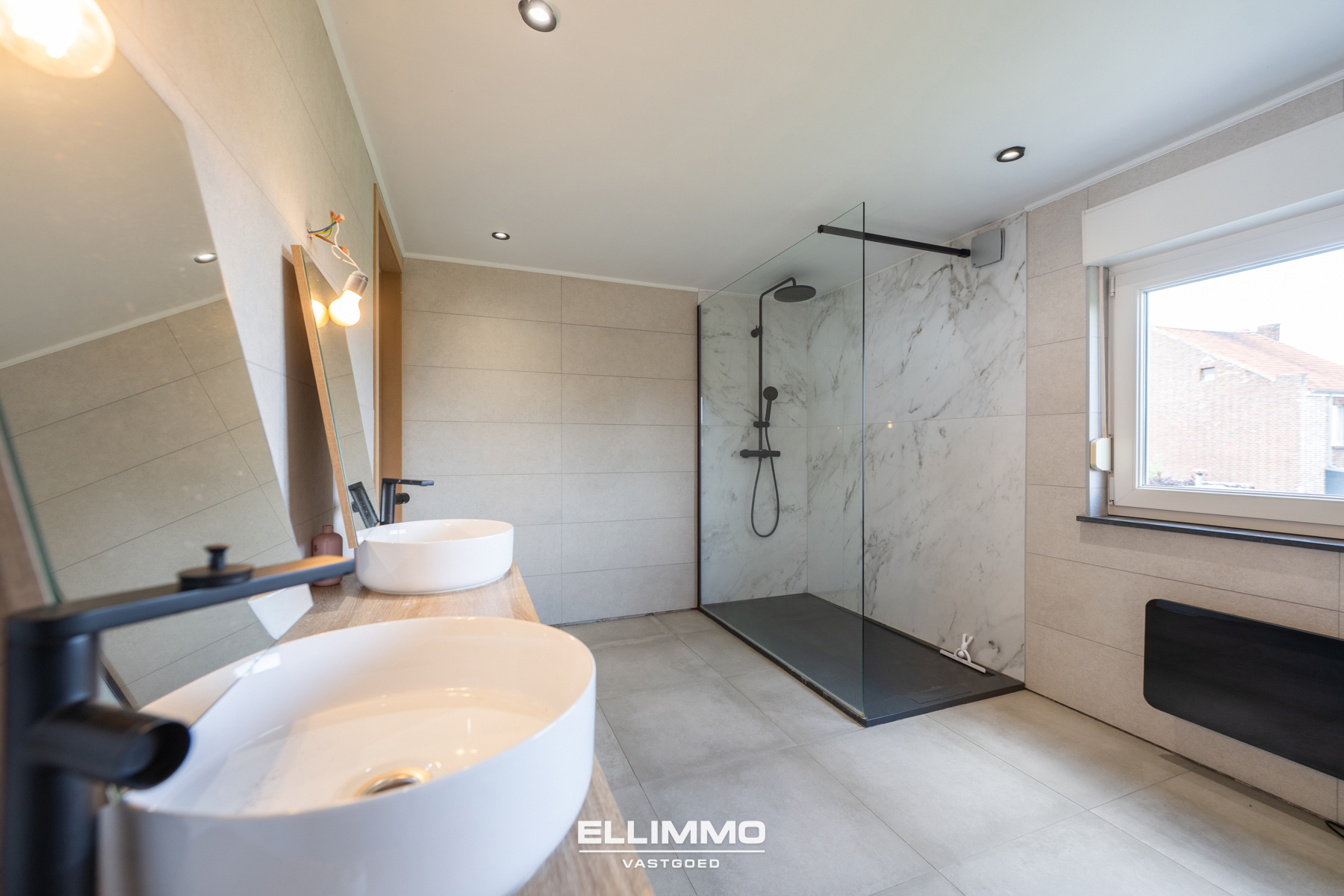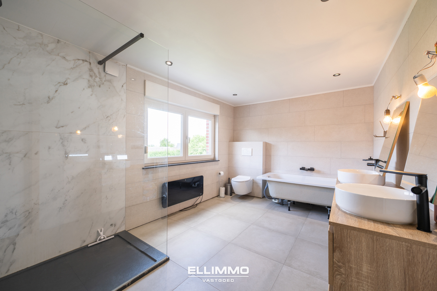 Nachthal met toegang naar de 4 ruime slaapkamers, allen afgewerkt met een mooie laminaatvloer, dressing en de ruime badkamer uitgerust met een bad, inloopdouche, dubbele lavabo met meubel en toilet.