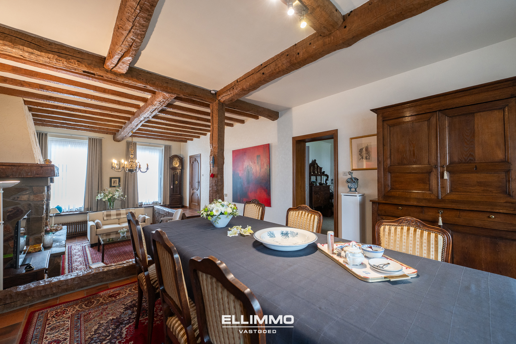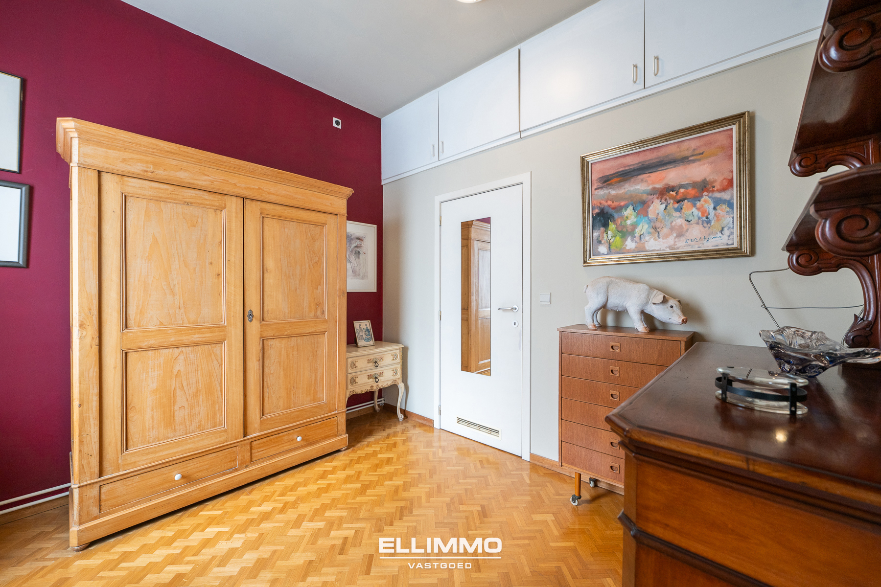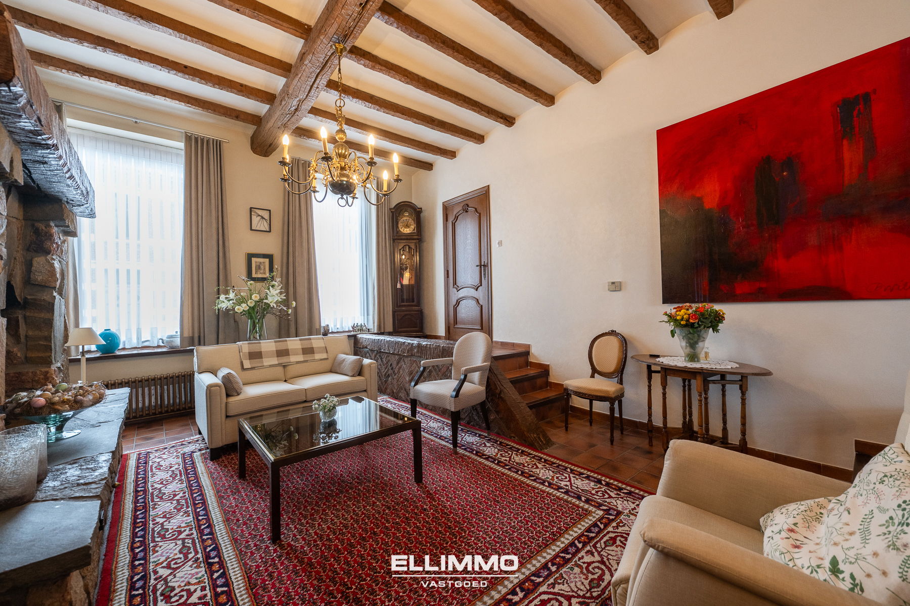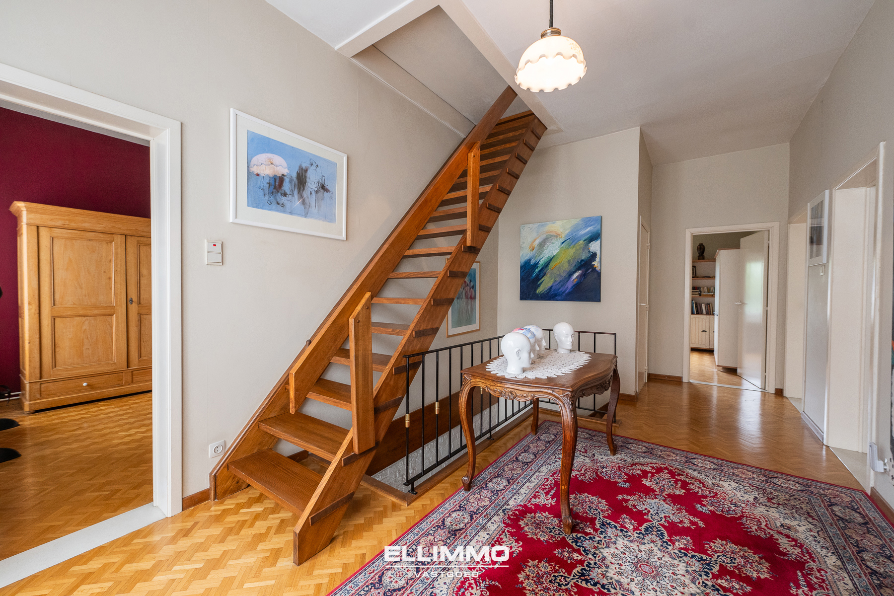 De woning ademt karakter dankzij authentieke elementen zoals superhoge gewelfde plafonds, sierlijke schouwen en houten parketvloeren die zorgen voor een warme en sfeervolle uitstraling. Dankzij de hoge raampartijen geniet je van een overvloed aan natuurlijk licht doorheen de hele woning.