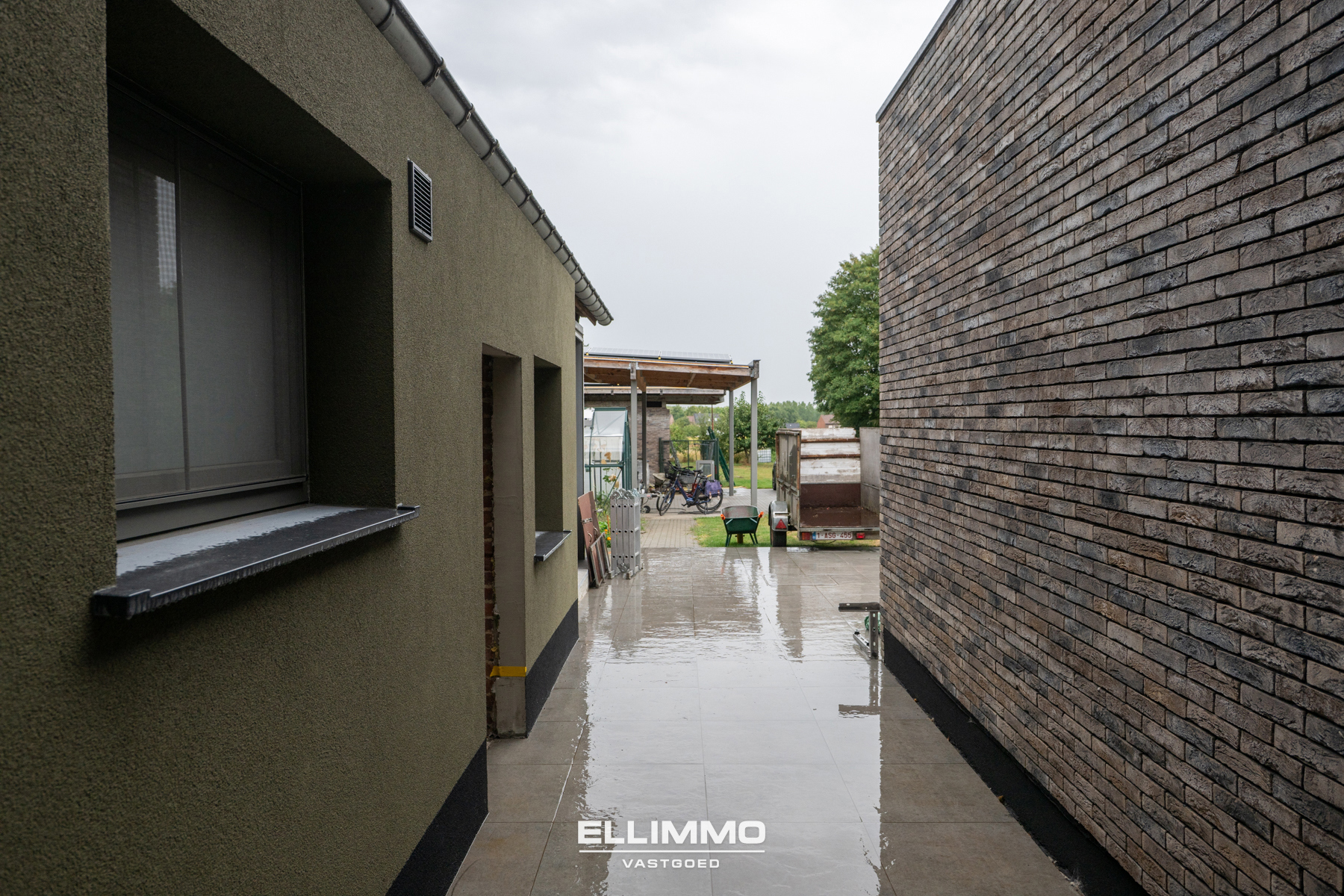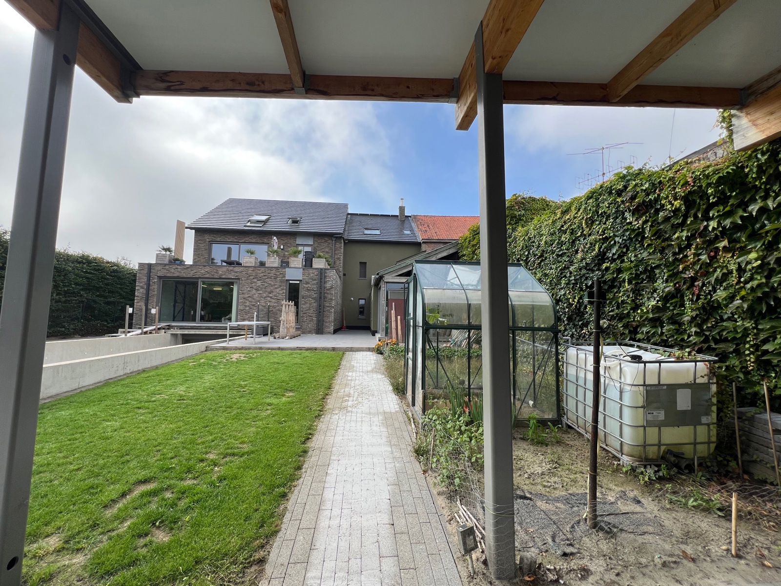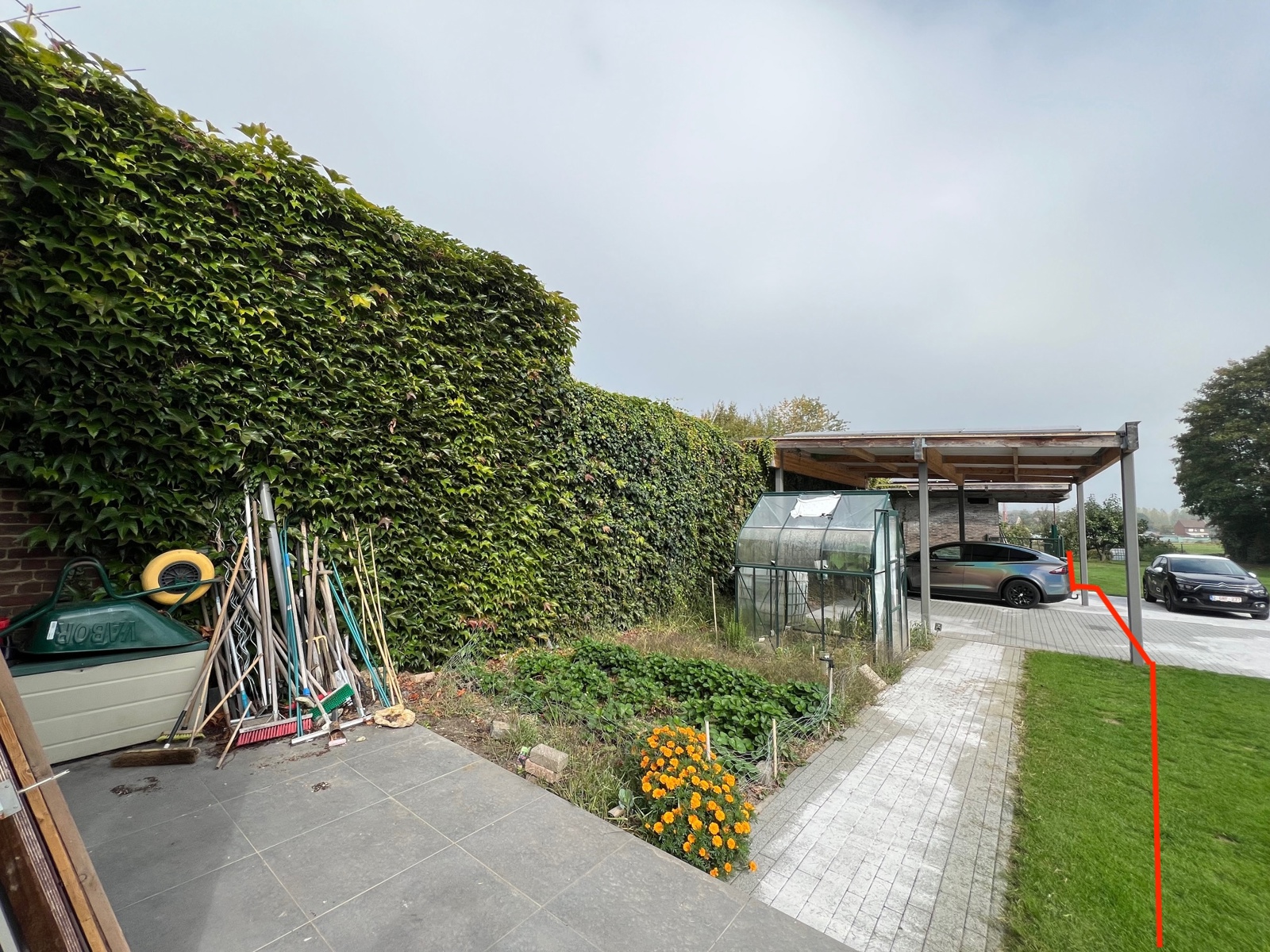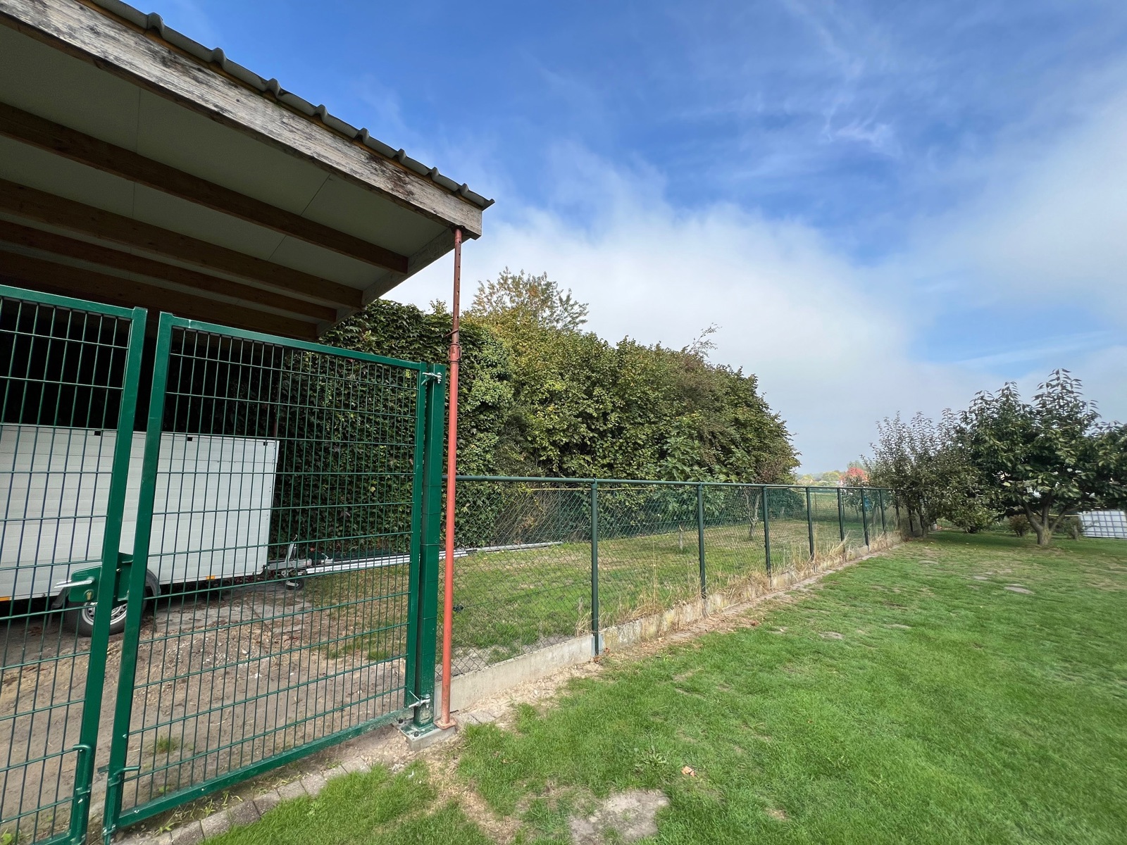 Ook beschikt de woning over een ruime carport voor 2 wagens, een autostandplaats voor de woning én een leuke tuin, nu weide, bereikbaar via de zijkant van de blok. De achterkant is bereikbaar via een gemeenschappelijke elektrische poort, zo staan de wagens altijd veilig achter de woning.