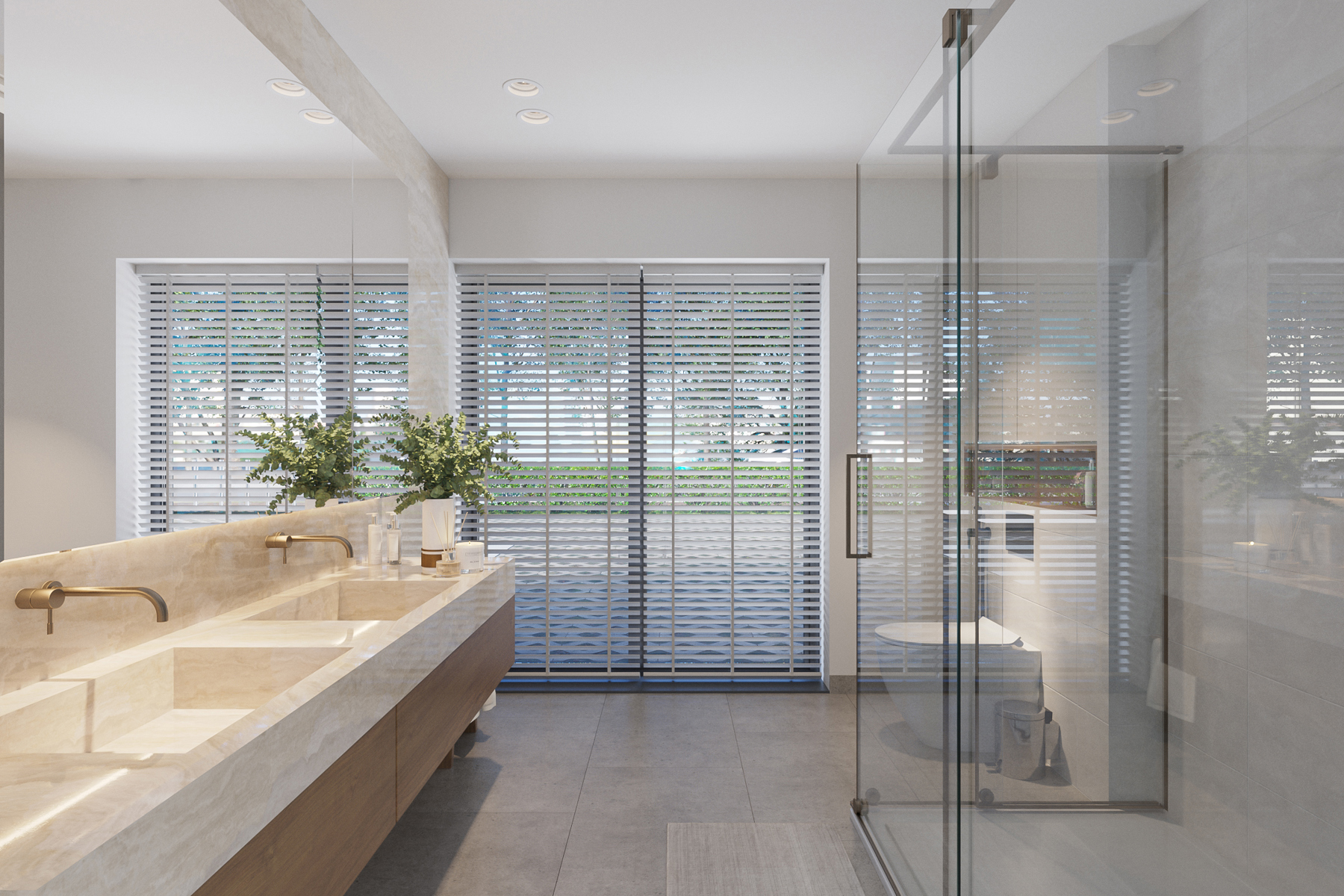3 standaard airco’s, sunscreens, 1ste laag verf en regenwaterrecuperatie voorzien