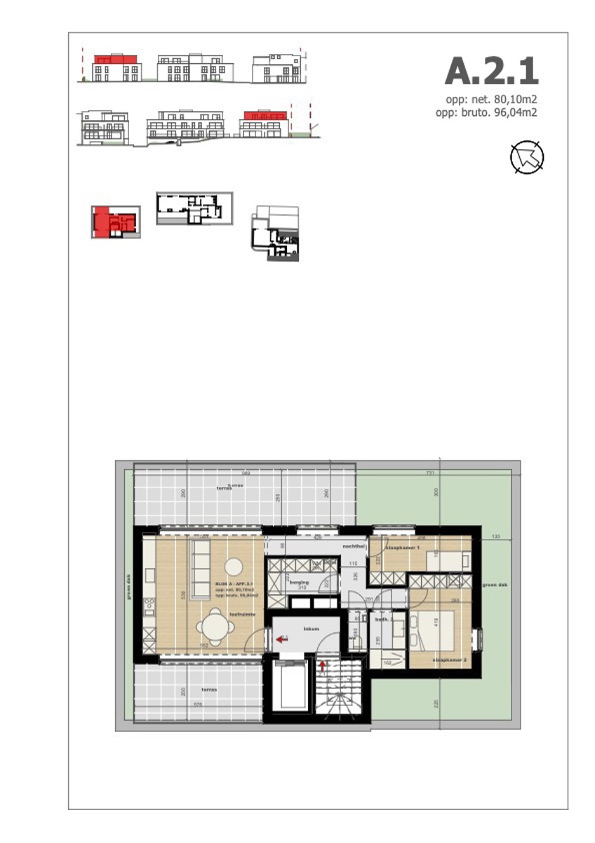Penthouse A2.1 is helemaal alleen gelegen op het tweede verdiep en heeft een bewoonbare oppervlakte van 96m2 en een zalig terras aan de voorkant én aan de achterkant van de blok, samen goed voor nog eens 43m2. Het appartement heeft 2 slaapkamers en een zalige leefruimte met zowel aan de voorkant als aan de achterkant zeer grote raampartijen naar de terrassen toe waardoor er een heerlijke lichtinval is.