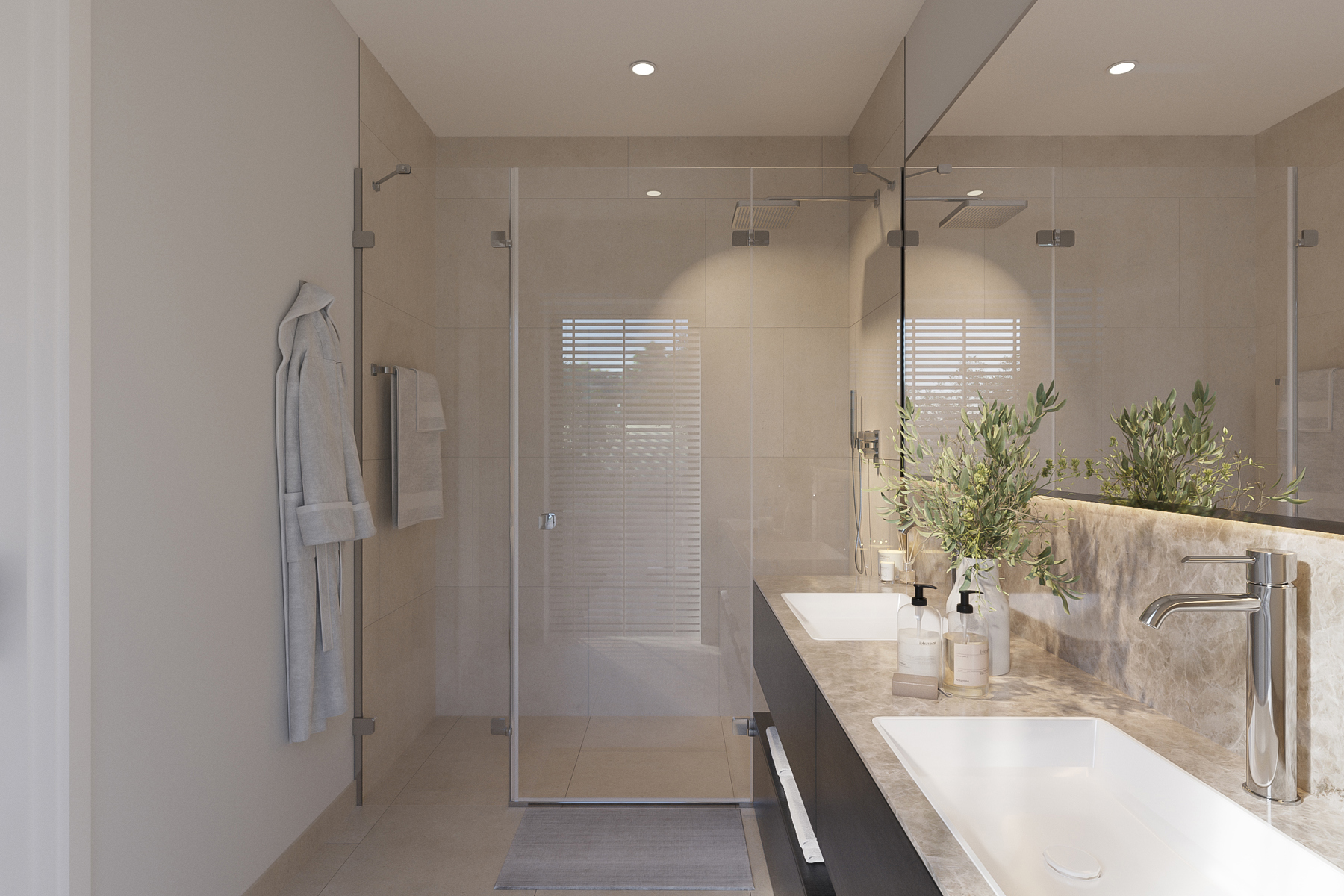 Grote terrassen worden een verlengde van de woonkamer, omgeven door een prachtige aangelegde tuin die het geheel een serene uitstraling geeft. Binnen gaat verfijning hand in hand met ultiem comfort; luxueuze afwerkingen met een keukenbudget van € 25.000 - en een badkamerbuget van € 8.000 - zorgen voor pure verwennerij.