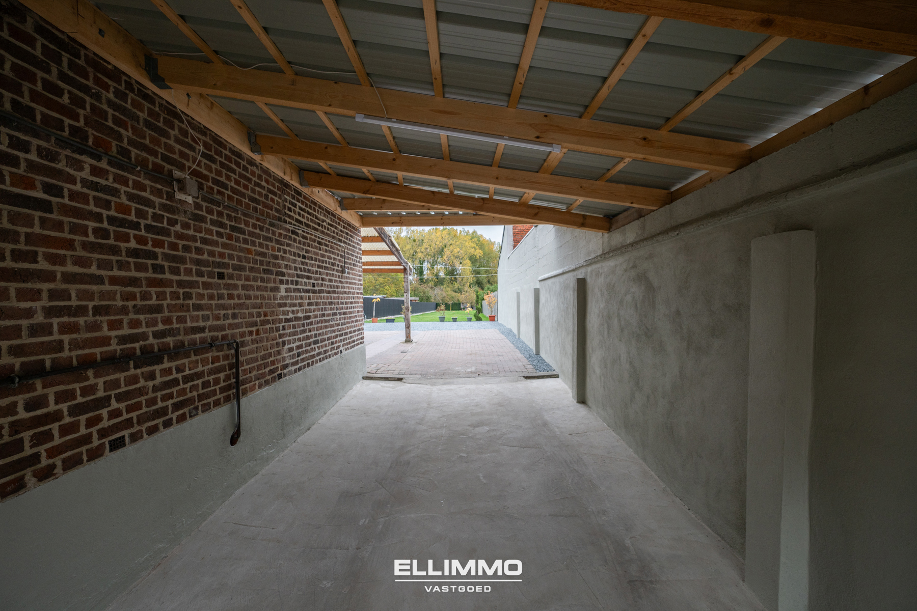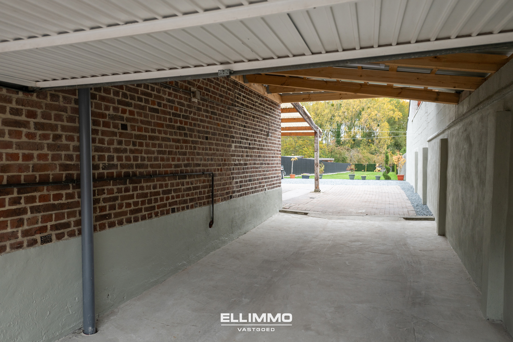 Inkomhal met trap naar de verdieping. Gezellige leefruimte en volledig ingerichte keuken met zicht op de tuin. Aansluitend bevindt zich een douchekamer/wasplaats met toilet. Via de achterdeur in de hal kom je op het overdekte terras. De volledig omheinde tuin met achterliggend landbouwgebied biedt maximale rust en privacy. Verder vind je er een ruime en praktische buitenberging en een handige carport, afgesloten met een poort aan de straatzijde.