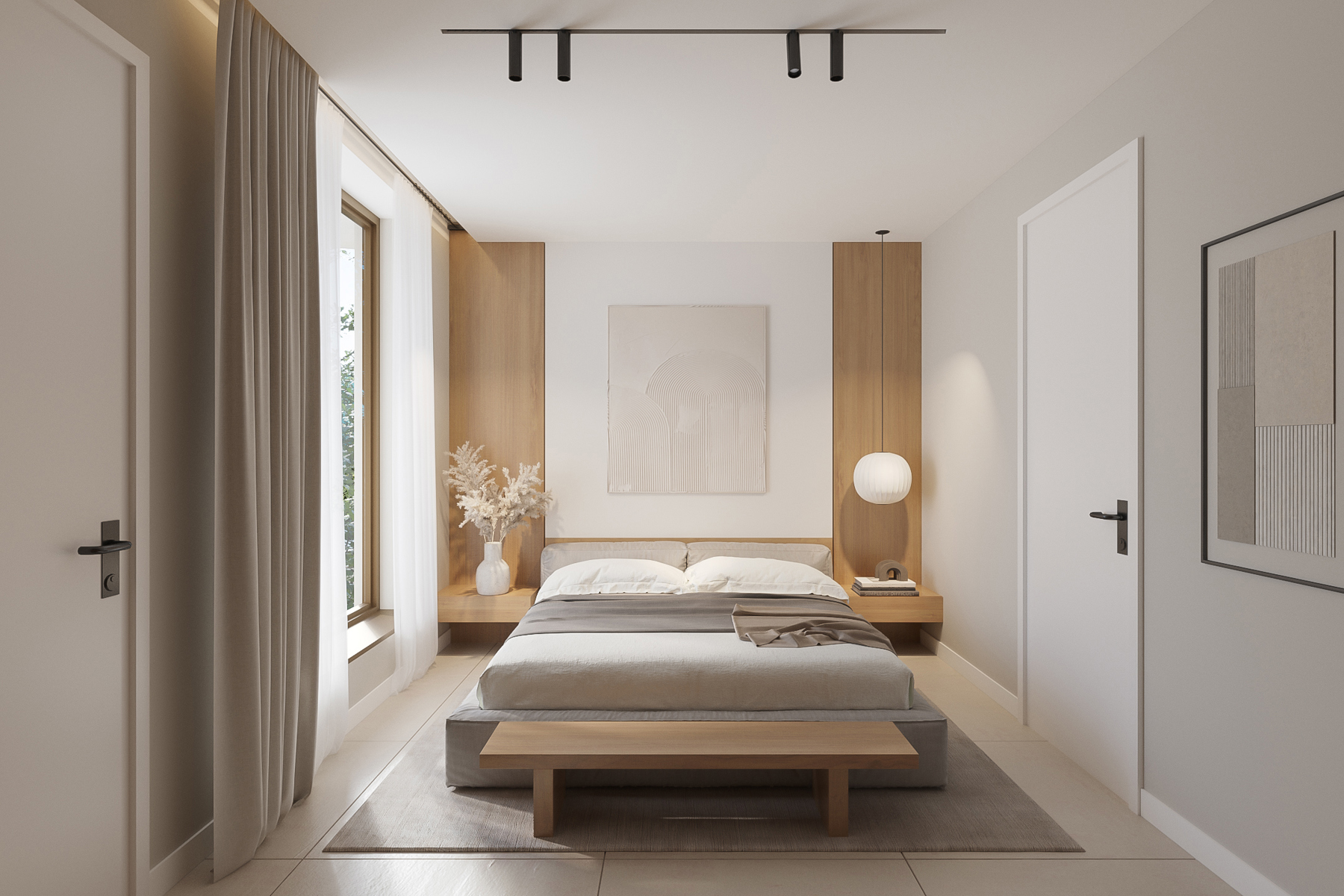 Binnen wordt dezelfde sereniteit doorgetrokken. Elk appartement wordt afgewerkt met hoogwaardige materialen, tijdloze klasse en met de allerlaatste technieken. De royale raampartijen brengen overvloedig daglicht binnen en de ruime terrassen zorgen voor een heerlijk verlengde van de leefruimte.