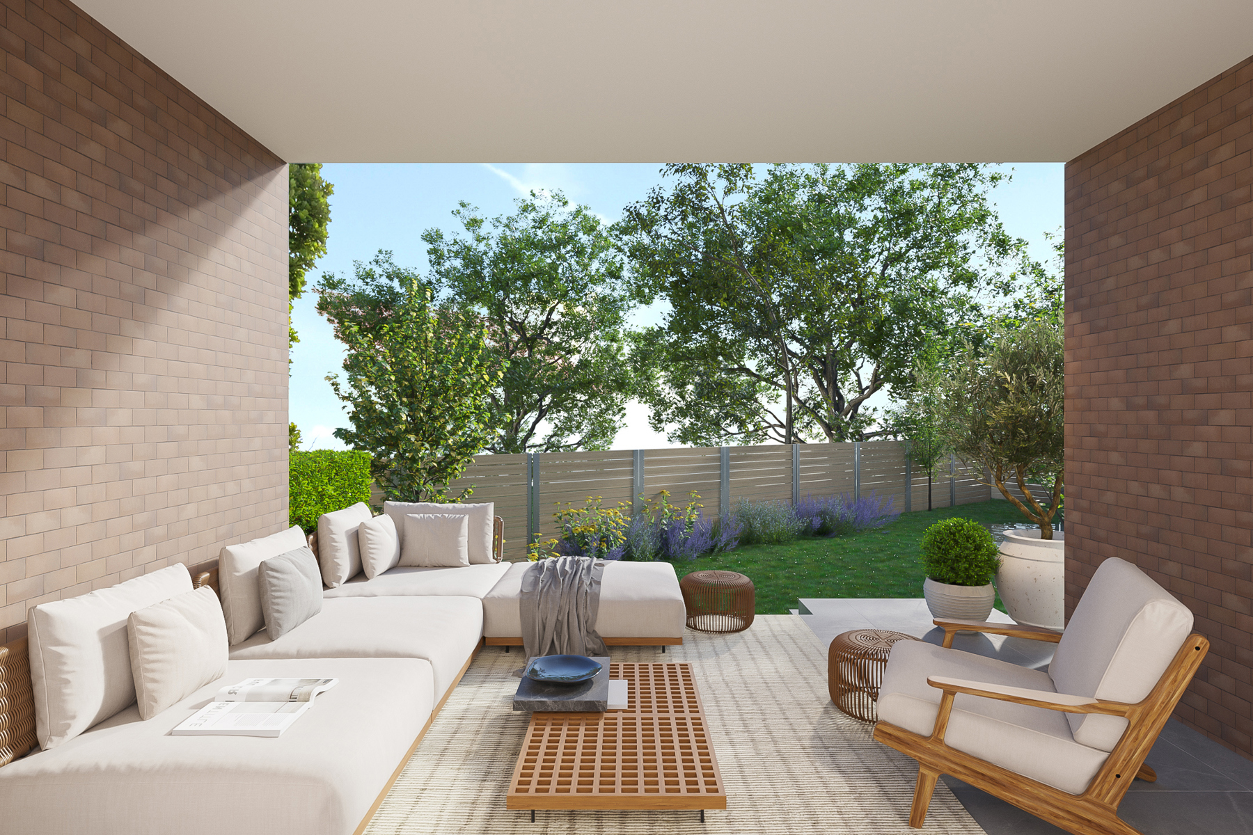 Binnen wordt dezelfde sereniteit doorgetrokken. Elk appartement wordt afgewerkt met hoogwaardige materialen, tijdloze klasse en met de allerlaatste technieken. De royale raampartijen brengen overvloedig daglicht binnen en de ruime terrassen zorgen voor een heerlijk verlengde van de leefruimte.