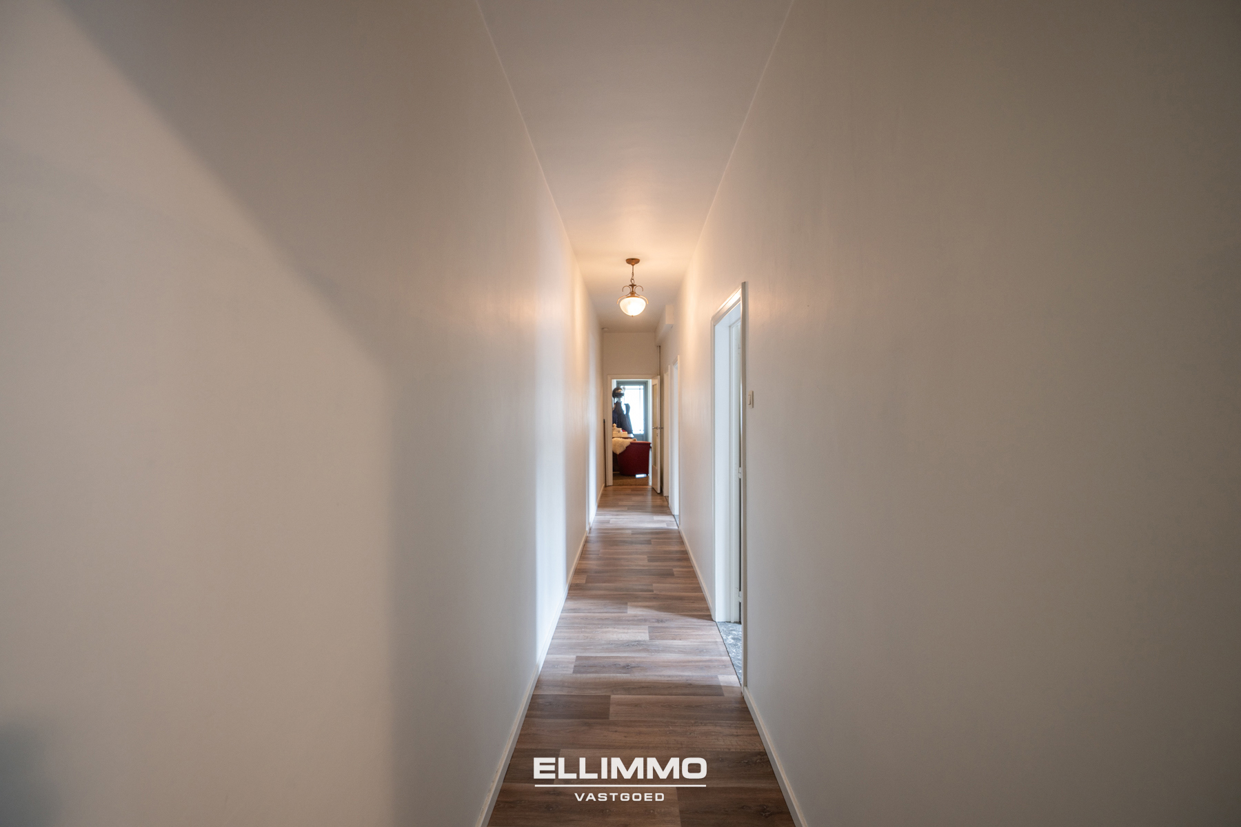 Inkomhal met toegang naar de leefruimte met aansluitend de volledig geïnstalleerde keuken, badkamer uitgerust met een douche en een dubbele lavabo met meubel, apart toilet, en dan de 3 slaapkamers.