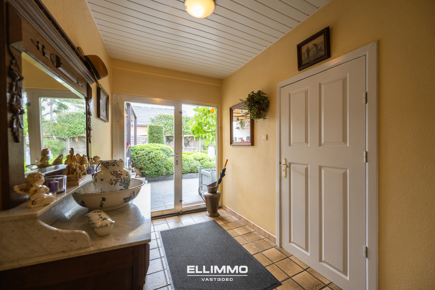 Charmante inkomhal met trap naar het verdiep, gastentoilet en een mooie dubbel glazen deur naar de leefruimte, gezellige leefruimte met de geïnstalleerde keuken en met zowel aan de voorkant als de achterkant veel glas waardoor er veel licht naar binnen komt en met een mooi uitzicht op de tuin. Achterinkomhal met toegang naar de wasplaats, badkamer 1 met een douche en toilet, inpandige garage.